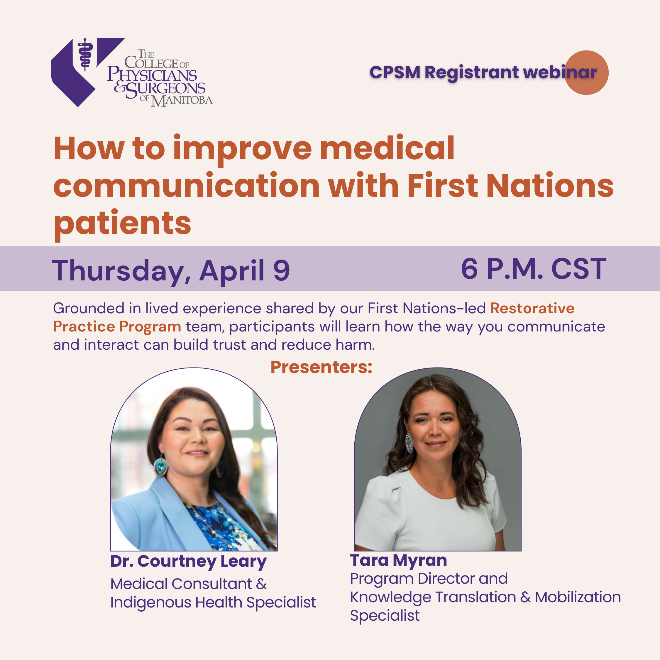 Join this webinar to hear from Dr. Courtney Leary, Medical Consultant and Indigenous Health Specialist and Tara Myran, Program Director for the Restorative Practices, for an honest and practical conversation about creating a culturally safe space for First Nations patients.